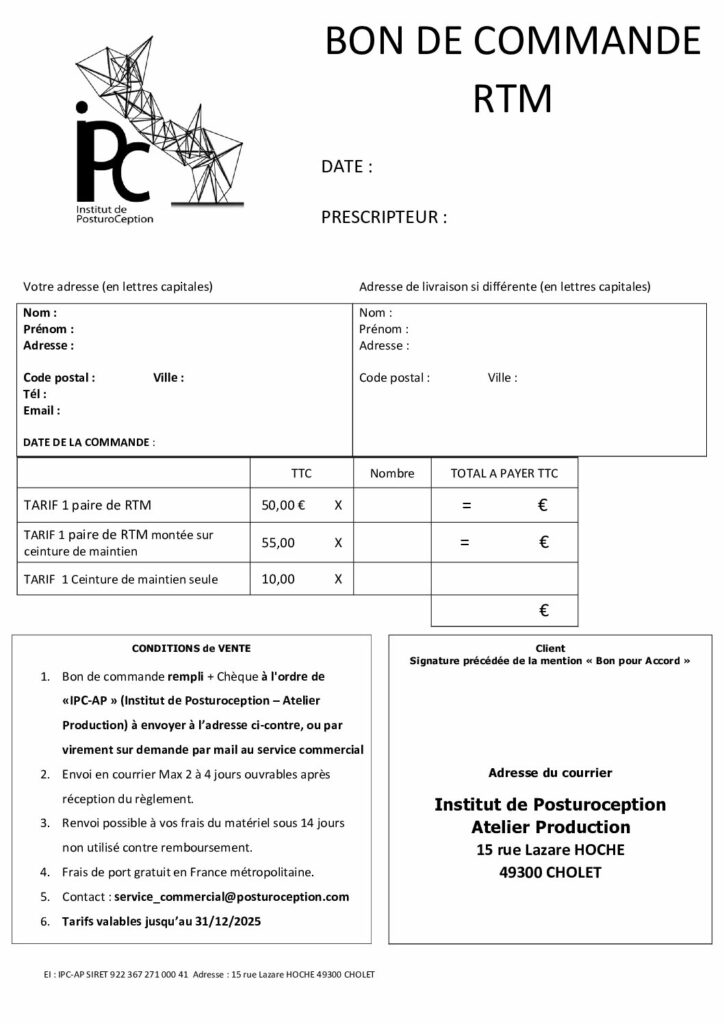 Vous souhaitez commander des RTM®, télécharger le bon de commande et renvoyer le complété à l’adresse indiquée.